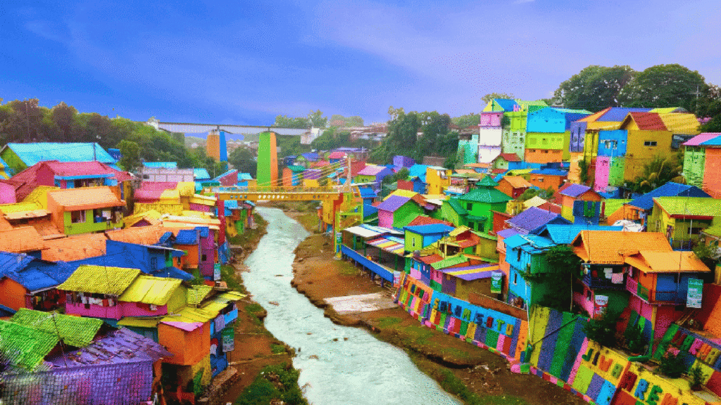 • Kampung Warna Warni Jodipan (dan Kampung Tridi): Kawasan perkampungan padat penduduk yang disulap menjadi objek wisata dengan rumah-rumah yang dicat penuh warna dan lukisan 3D, menarik banyak pengunjung untuk berfoto.